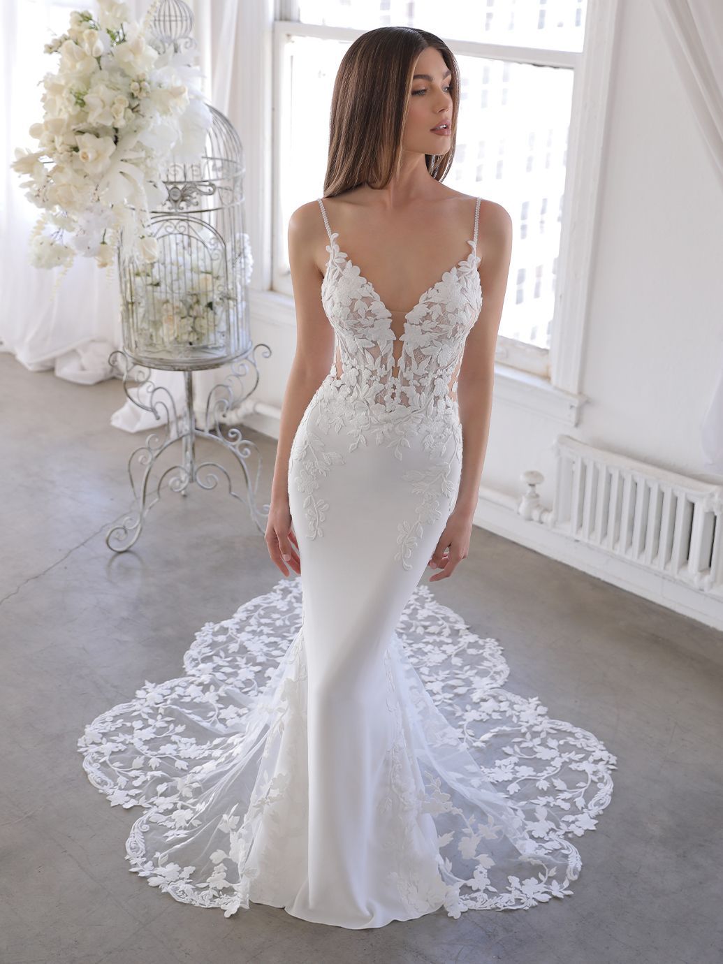 Blue by Enzoani offers the perfect balance of contemporary romance and meticulous craftsmanship, designed for brides who appreciate detailed elegance and impeccable fit. With rich lace accents, subtle beading, and sweeping silhouettes—from whimsical A-lines to sultry off-shoulder styles—each gown exudes fresh sophistication with a nod to tradition.